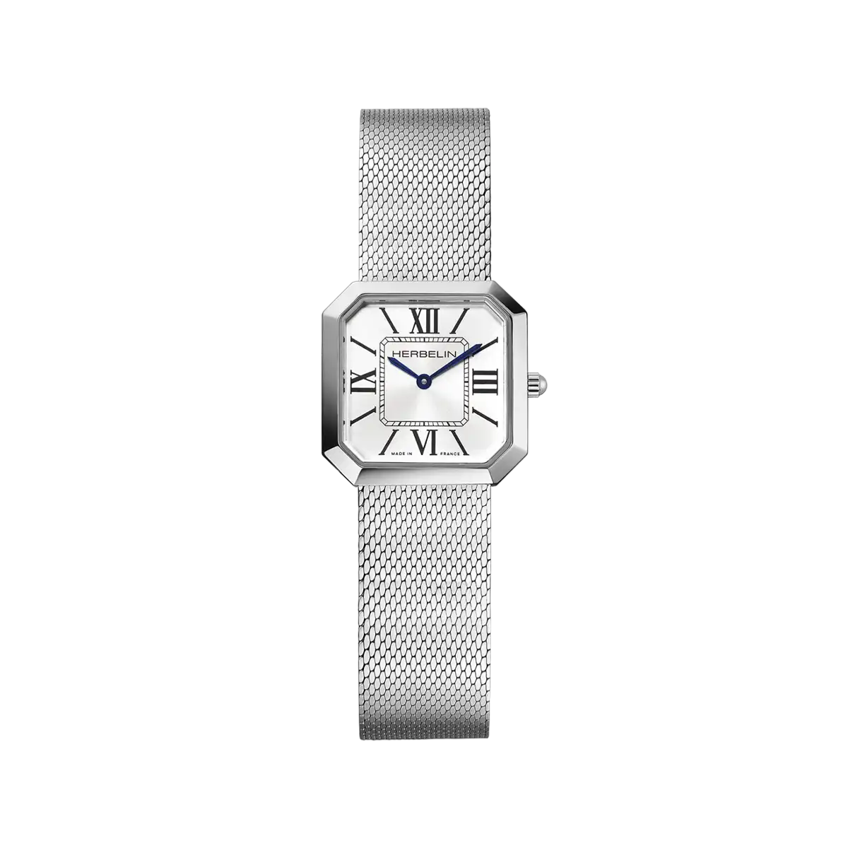 - |Description|Sublimez votre style avec l’élégance intemporelle de la montre OCTOGÔNE Quartz Acier & Index, un bijou horloger conçu pour les femmes en quête de raffinement. Alliant design sophistiqué et savoir-faire horloger, cette création unique met en lumière l’excellence de la maison HERBELIN. Son boîtier octogonal en acier inoxydable, abrite un cadran protégé par un verre saphir, garantissant une résistance optimale et une lisibilité parfaite. Les aiguilles bleues et les index en chiffres romains, associés à une minuterie chemin de fer, créent un équilibre visuel parfait, entre modernité et tradition. Propulsée par un mouvement à quartz suisse, cette montre promet une précision irréprochable. Le bracelet en maille milanaise ajoute une touche citadine et contemporaine à l’ensemble. Sa texture souple et fluide épouse parfaitement le poignet, offrant un confort incomparable tout au long de la journée. Polyvalent et intemporel, il rehausse votre look, qu’il soit chic ou décontracté, tout en apportant une allure urbaine irrésistible.