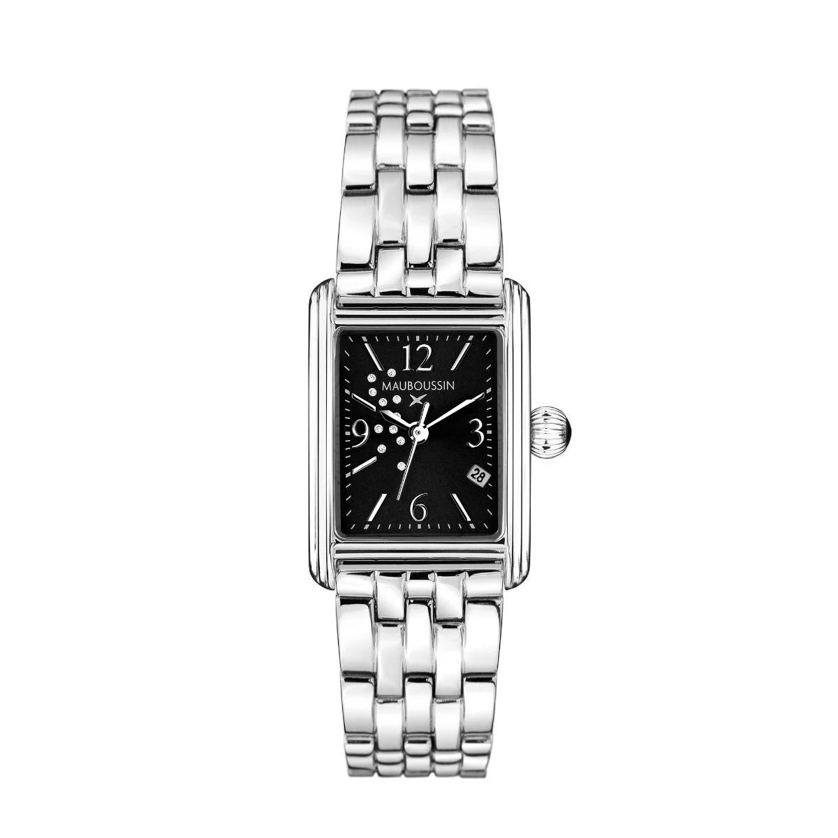 - |Description|Pièce de caractère, la montre Rue Colette pour dame incarne le chic parisien avec son cadran rectangulaire et son bracelet en acier poli et brossé.
