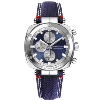 - |Description|La collection Newport est une des collections emblématiques de la marque Herbelin. Newport Héritage Chronographe est mise en relief par des surfaces polies et brossées, la forme coussin du boitier en acier inoxydable rehausse le cadran au fond bleu. Ponctuée de trois compteurs, cette montre offre la lecture parfaite et précise du temps. Newport Héritage Chronographe est habillée d’un bracelet en cuir bleu accompagné de surpiqure blanches et de détails rouge affichant subtilement ses origines françaises. Cette montre masculine est issue d’un savoir-faire horloger traditionnel français.